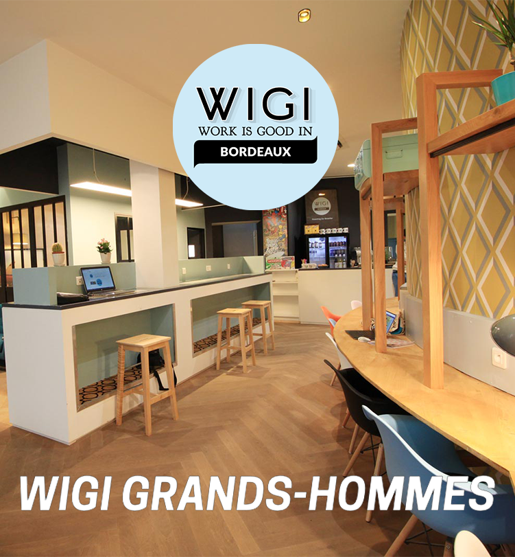 Etabli depuis 2016, Wigi a su s’imposer comme un espace de coworking incontournable de Bordeaux auprès de ses coworkers. Conçu pour tous, pour travailler autrement, différemment, seul ou à plusieurs. On peut y venir quand on veut et autant qu’on veut, que ce soit pour travailler en openspace, réserver une salle, ou même privatiser l’espace. Wigi ouvre toutes les possibilités et de par son ambiance chaleureuse et bienveillante on s’y sent comme à la maison