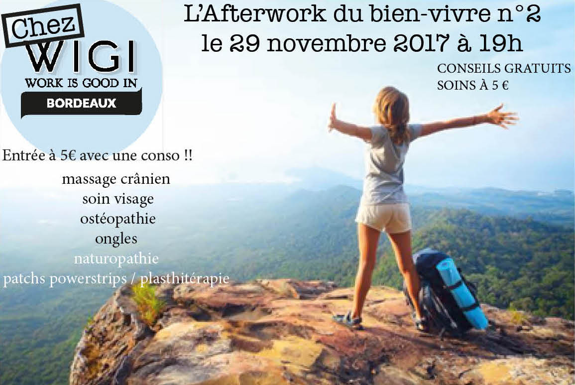 l’Afterwork du Bien-Vivre est un mélange de soins à petits prix et conseils gratuits qui vous permettrons de découvrir ou redécouvrir de nouvelles méthodes.