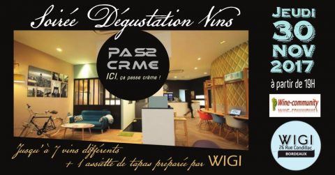 PASS CRME organise sa nouvelle soirée au WIGI pour vous faire découvrir jusqu’à 7 vins différents proposés par notre Partenaire…